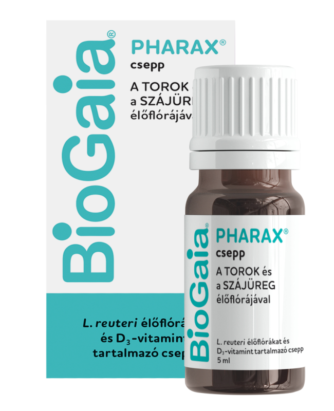 BioGaia PHARAX, étrend-kiegészítő csepp a TOROK élőflórájával, 6 hónapos kortól
